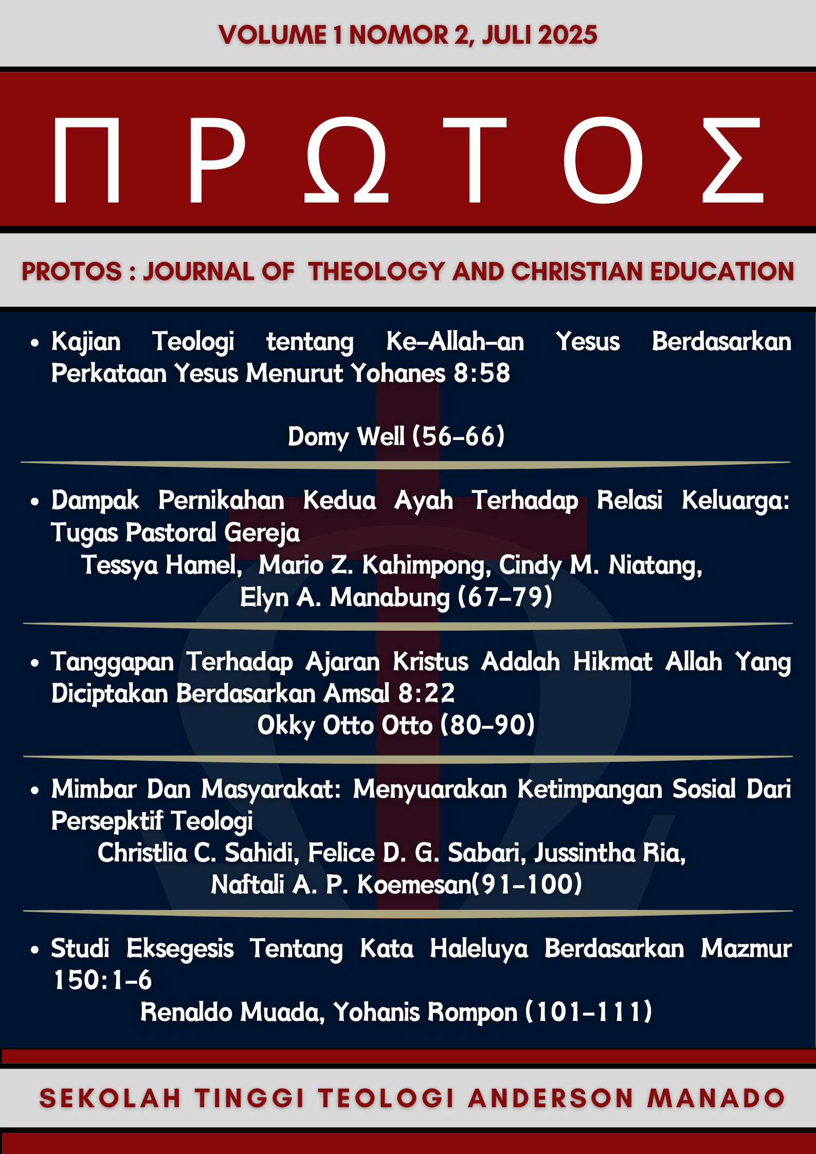 Copyright (c) 2025 Protos Journal of Theology and Christian Education